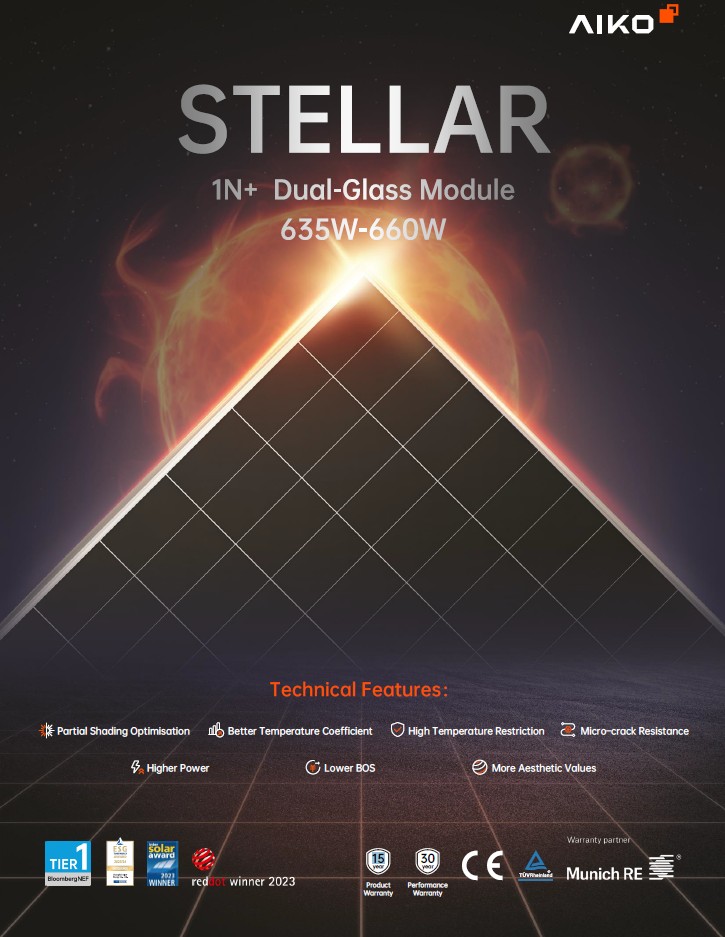 Energie solară extrem de eficientă cu modulul solar AIKO-G645-MCH72Dw (BIF, DG) – 645 wați, tip n xBC
